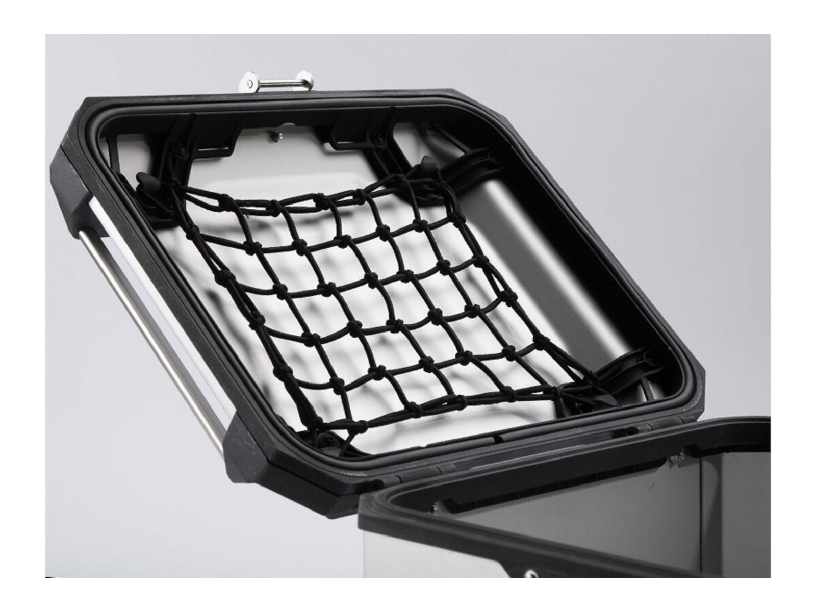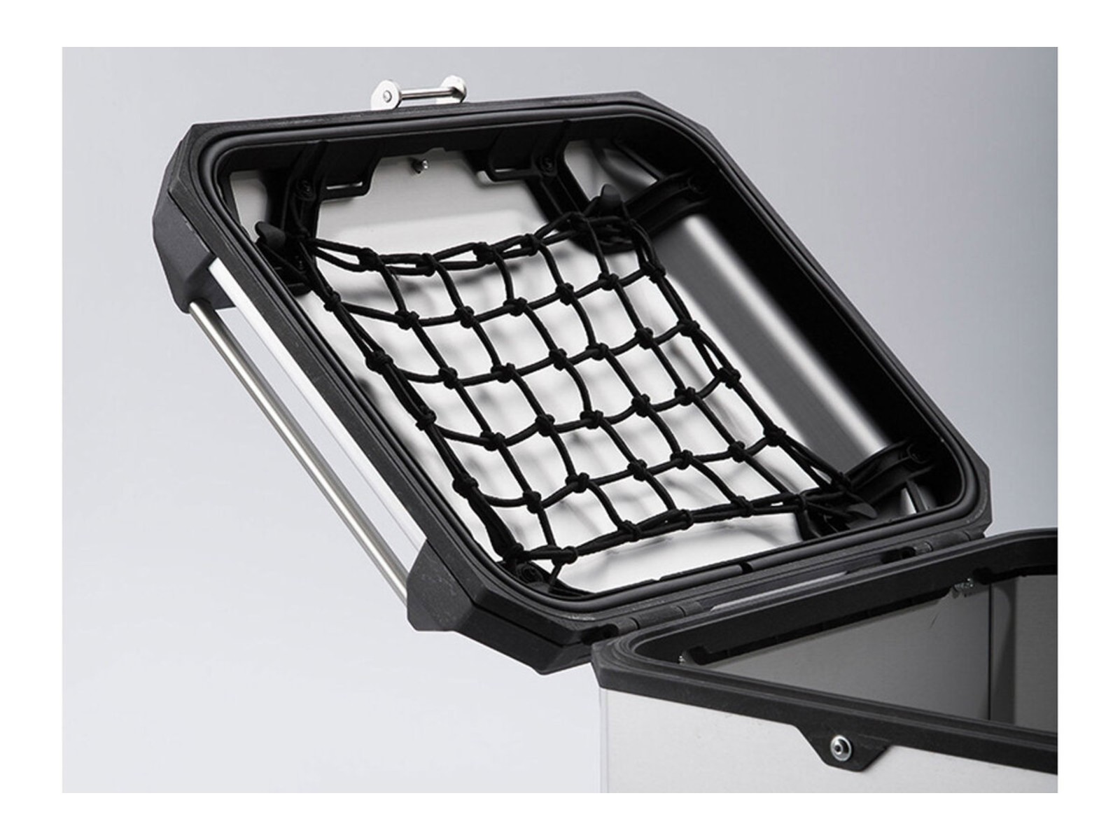 Le nostre valigie in alluminio offrono molto spazio di archiviazione, ed è per questo che è importante avere le giuste finiture interne in modo da non perdere traccia del contenuto della valigetta. La rete del coperchio, disponibile per il bauletto e le valigie laterali della serie TRAX ADV, si è affermata come un "spartitraffico". La rete altamente flessibile viene semplicemente appesa all'interno del coperchio e lo spazio di archiviazione aggiuntivo facilmente accessibile è già disponibile.