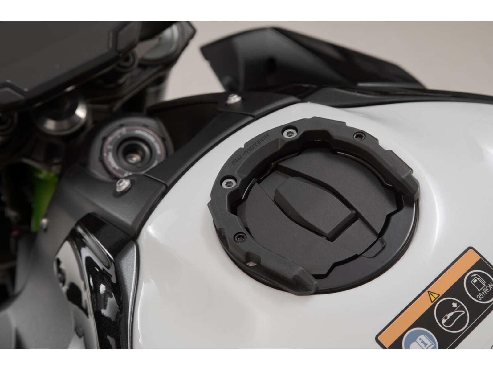 L'anello del serbatoio PRO è adattato al bocchettone di riempimento del serbatoio del modello di moto. Ciò garantisce il miglior posizionamento possibile sul serbatoio.