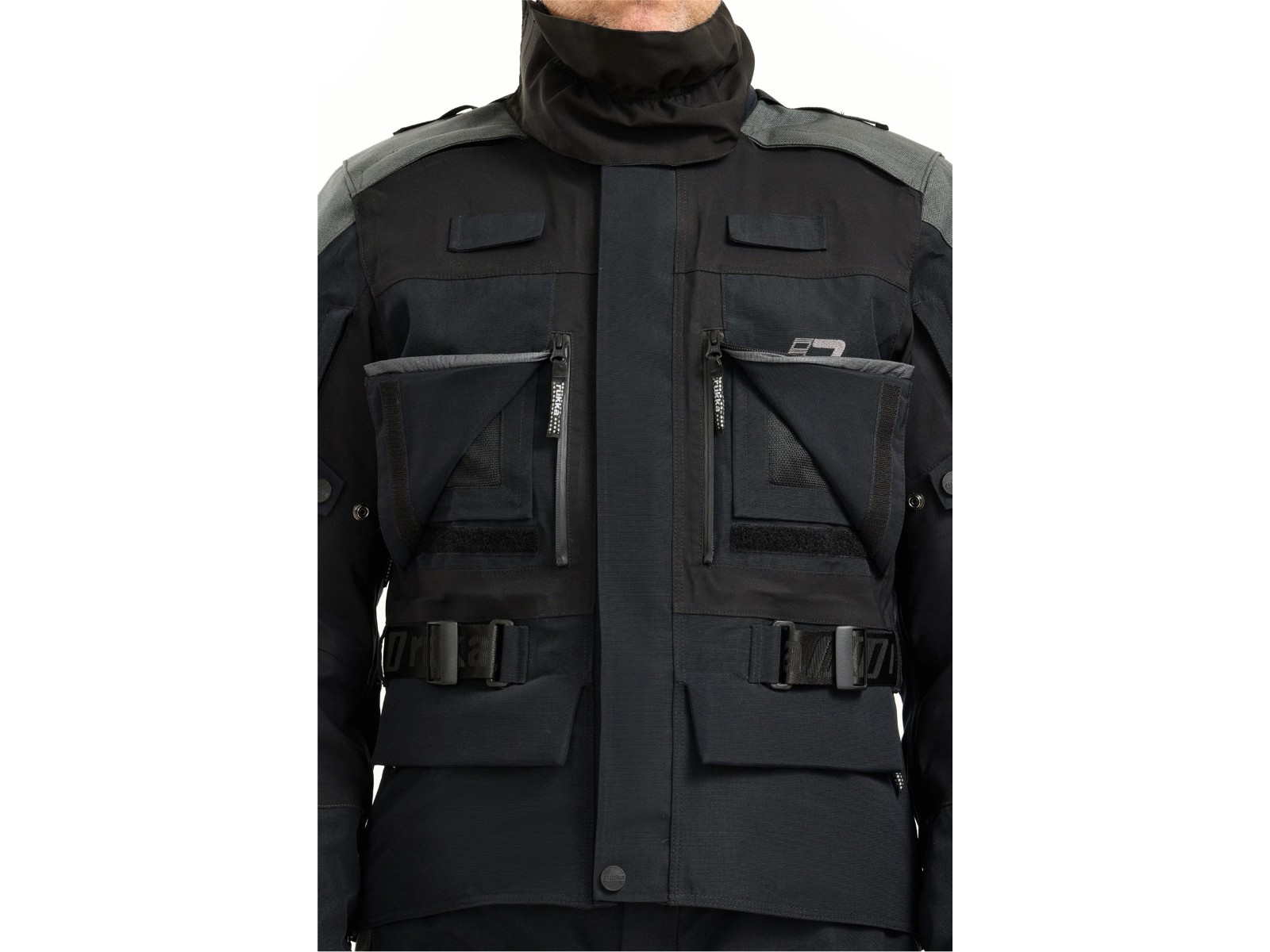 - Abnehmbarer, wasserdichter Sturmkragen aus GORE-TEX-Stretch-Material.