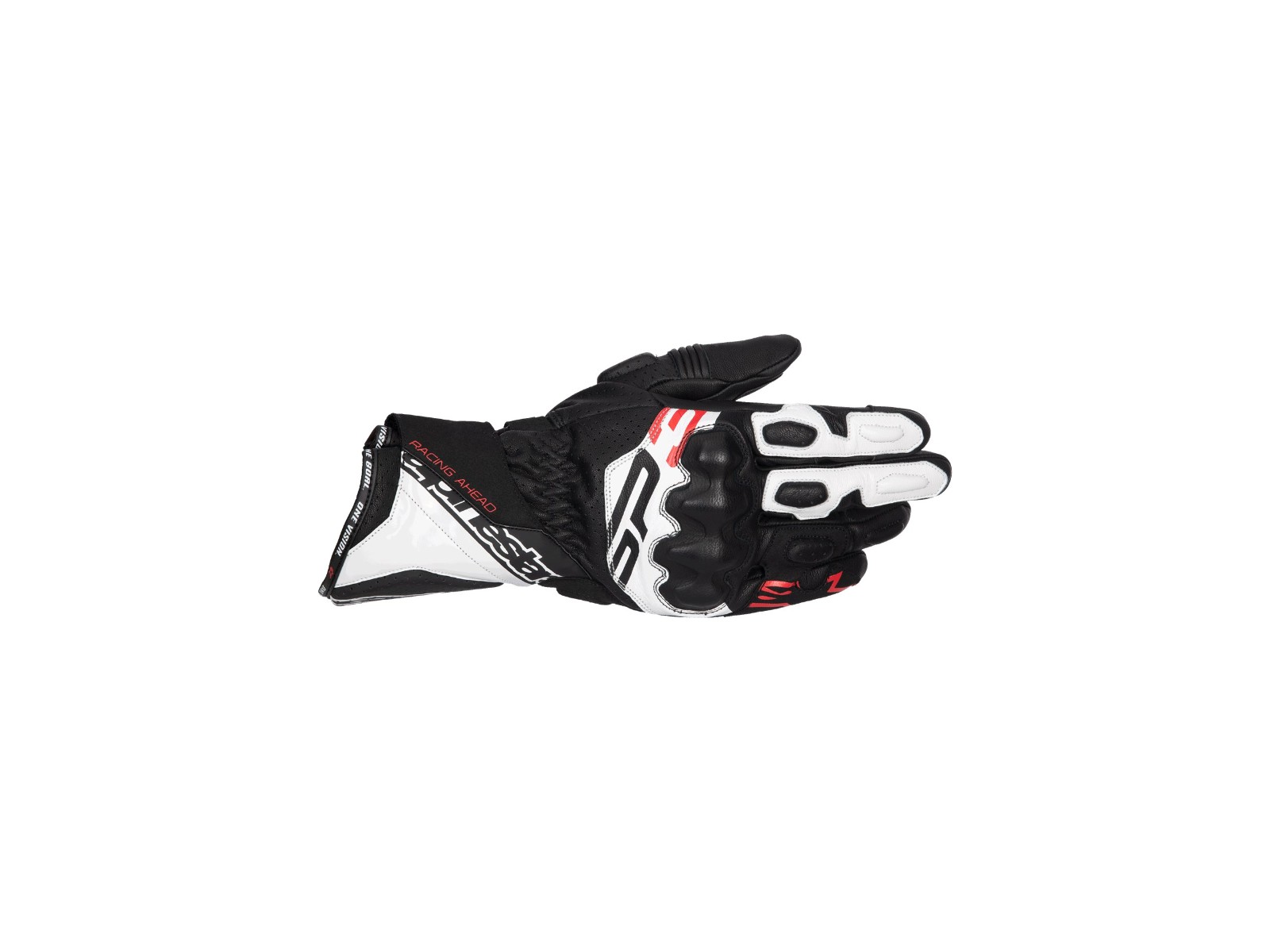 SP-3 Black White Red Fluo Leder Motorrad Handschuhe