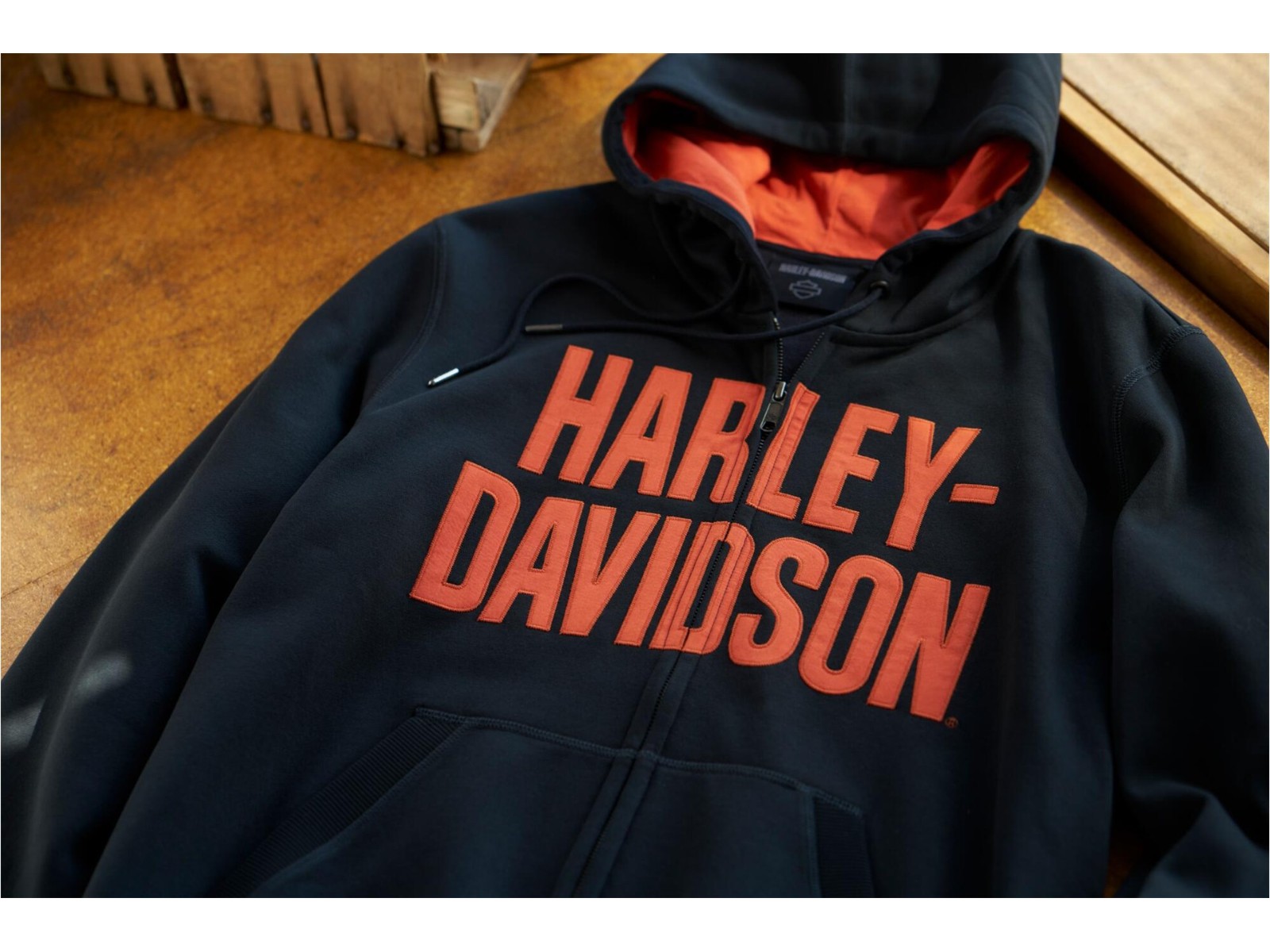 Wenn Du lässigen Komfort und gehobenen H-D® Stil suchst, wird Dich unser Bar Font Zip-Up Hoodie nicht enttäuschen. Es ist in entspannter Passform aus kuscheligem Fleece aus Baumwolle und Polyester gefertigt. Dieses Reißverschluss-Hoodie für Herren überzeugt mit seinem kontrastfarbenen Jersey-Kapuzenfutter, das perfekt mit unserem auffälligen applizierten Branding harmoniert.