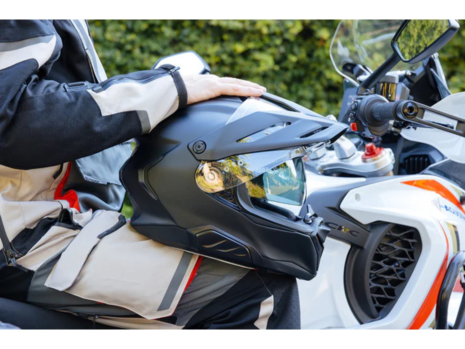 Top Helm im Enduro Style ! Gute Belüftung, 2 Visiere und BT Modul integrierbar. Auch bei Geschwindigkeiten über 200 reißt der Schirm nicht am Kopf. Auch vom Gewicht super. Top Helm