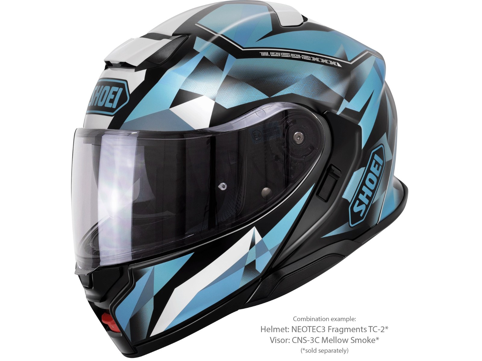 Für den SHOEI NEOTEC3 sind Visiere in unterschiedlichen Tönungen und Verspiegelungen erhältlich, die unter Beachtung der ECE Homologationsrichtlinien verwendet werden können. Der Helm ist serienmäßig mit einem Visier des Typs CNS-3C ausgerüstet. In allen erhältlichen Visieren dieses Typs können beschlaghemmende PINLOCK®EVO-Scheiben befestigt werden, von denen eine zum Lieferumfang des Helmes gehört.