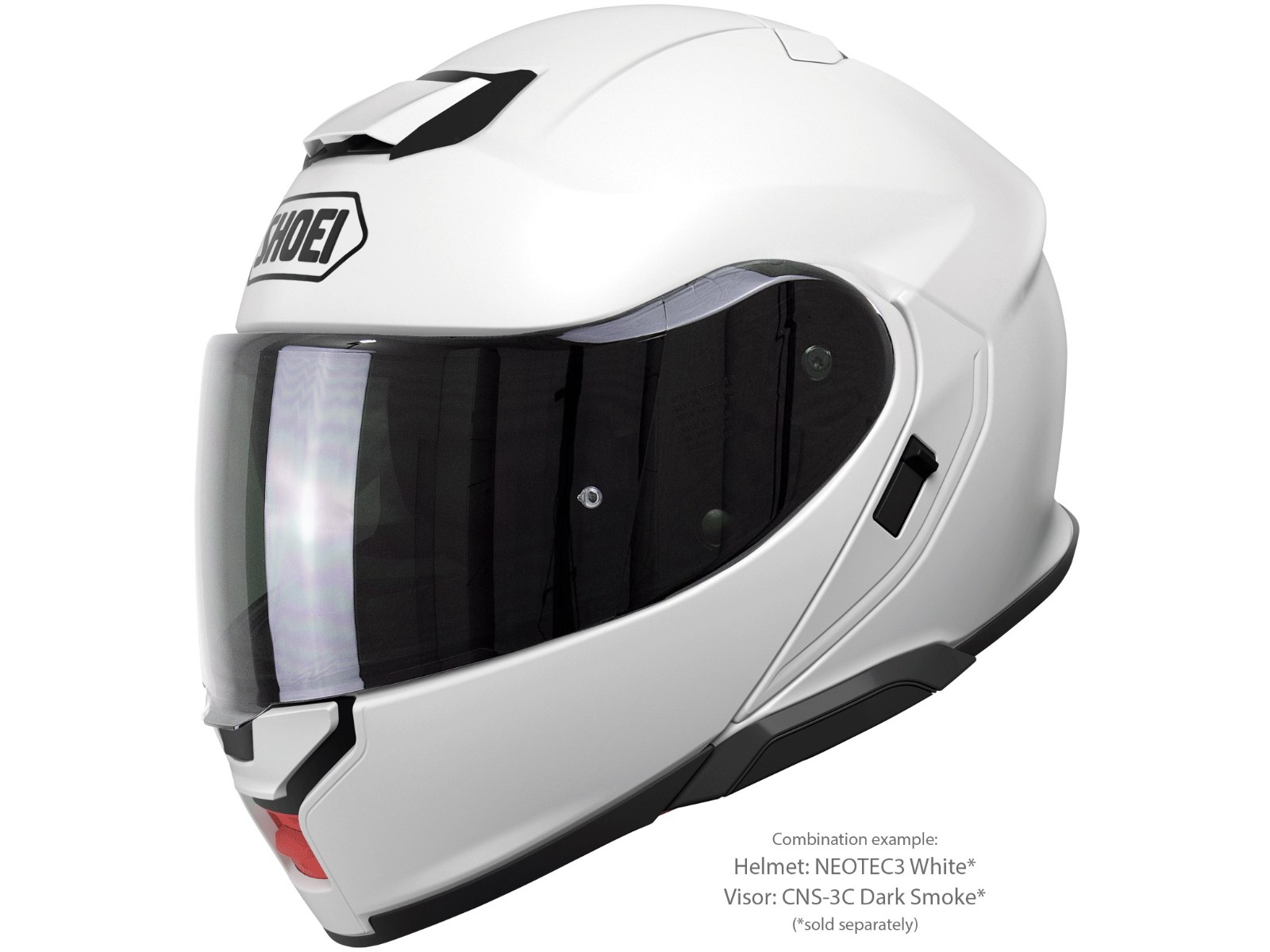 Für den SHOEI NEOTEC3 sind Visiere in unterschiedlichen Tönungen und Verspiegelungen erhältlich, die unter Beachtung der ECE Homologationsrichtlinien verwendet werden können. Der Helm ist serienmäßig mit einem Visier des Typs CNS-3C ausgerüstet. In allen erhältlichen Visieren dieses Typs können beschlaghemmende PINLOCK®EVO-Scheiben befestigt werden, von denen eine zum Lieferumfang des Helmes gehört.