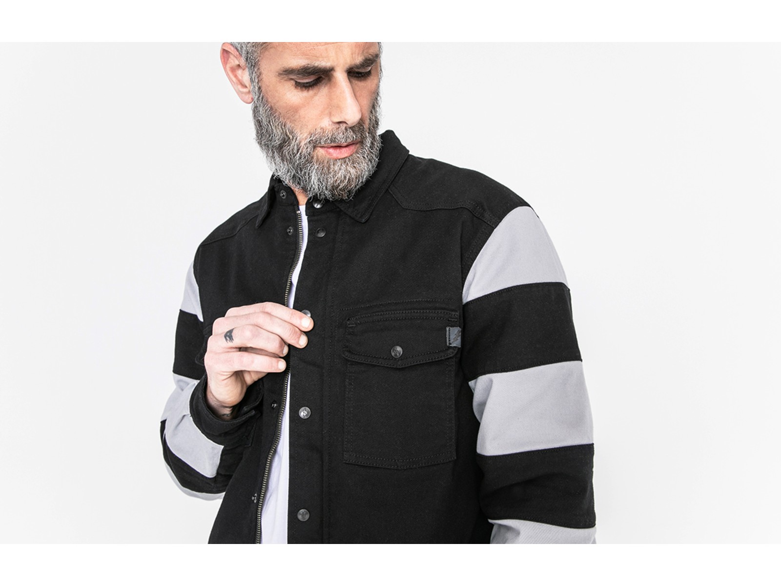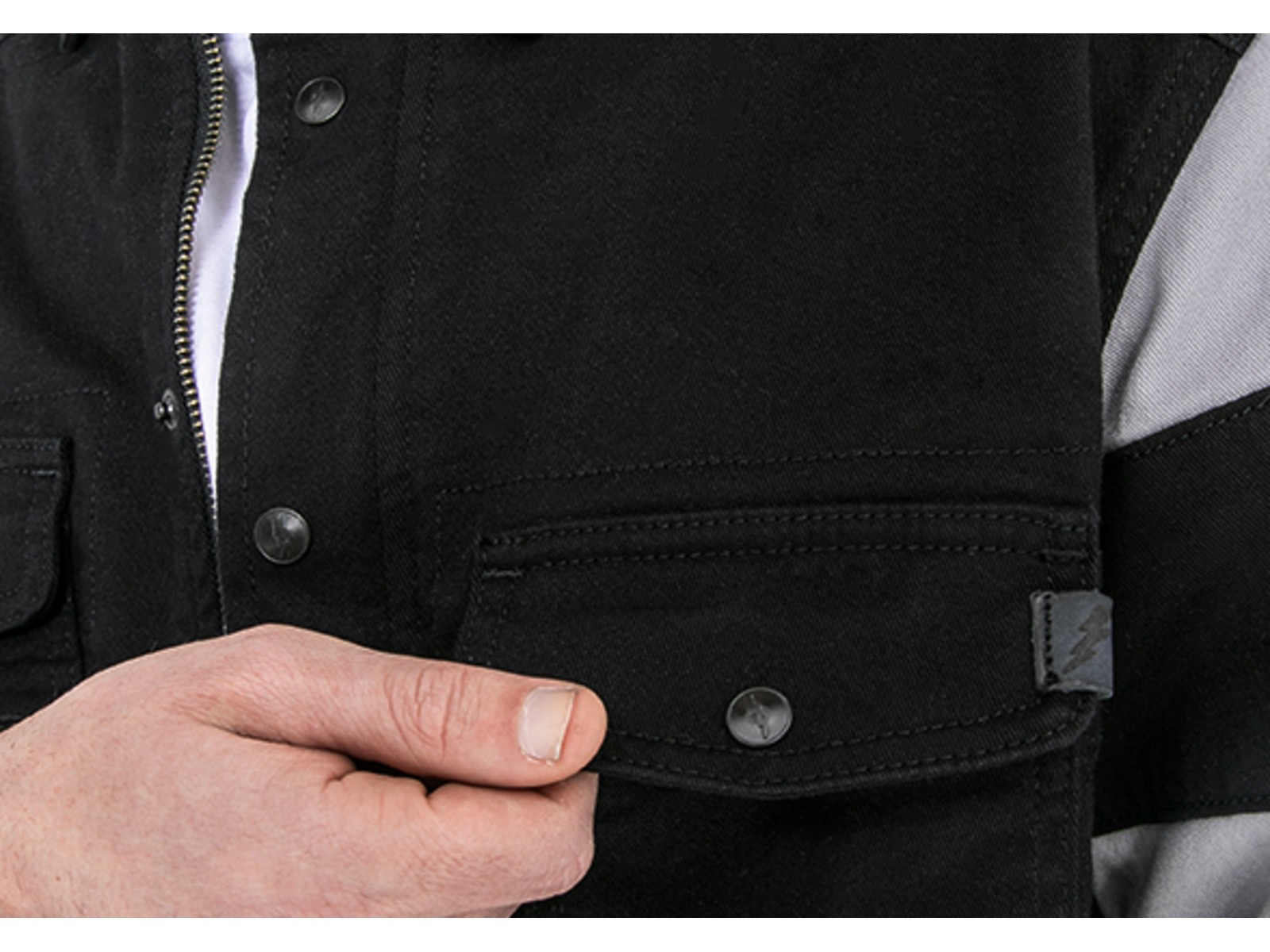 Möglich ist das durch den Innenstoff aus unserer XTM® Fiber und in Verbindung mit den Protektoren im Schulter-, Ellenbogen- (inklusive) und Rückenbereich (separat erhältlich). Das Motoshirt XTM® hat zwei Brusttaschen mit Drückknöpfen und zwei Innentaschen (eine mit Zipper, eine mit Klett).