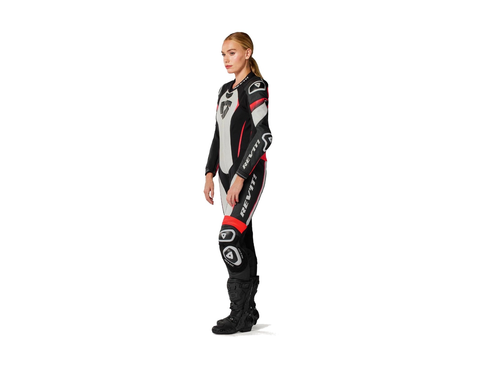 Xena 4 Ladies Einteilige Damen Lederkombi Weiß Fluo-Rot