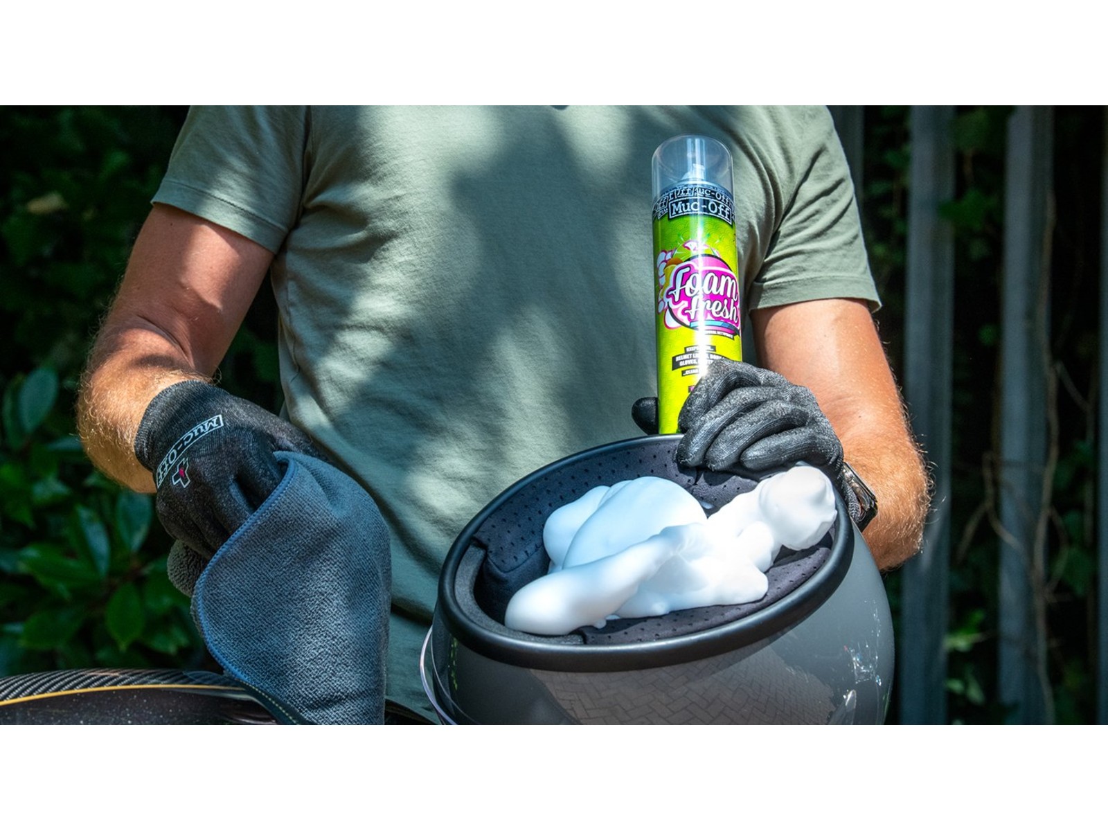 Muc-Off Foam Fresh ist ein hochwirksamer, einfach zu verwendender Schaumreiniger, der sich ideal für Helmfutter oder alle weichen Materialien eignet, die mit dem Fahrer in Kontakt kommen. Foam Fresh hat eine sofortige schäumende Wirkung, die Schmutz und Schmutz sanft von der Oberfläche entfernt und einen frischen Citric Burst-Duft hinterlässt. Selbst die sauberste Reitausrüstung profitiert von diesem einzigartig formulierten Produkt. Es ist großartig für den Einsatz auf Pads, Handschuhen, Schuhen, Linern und Körperschutz.