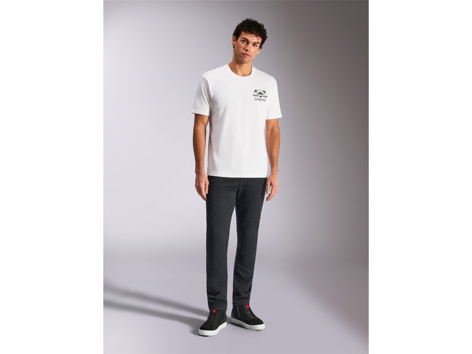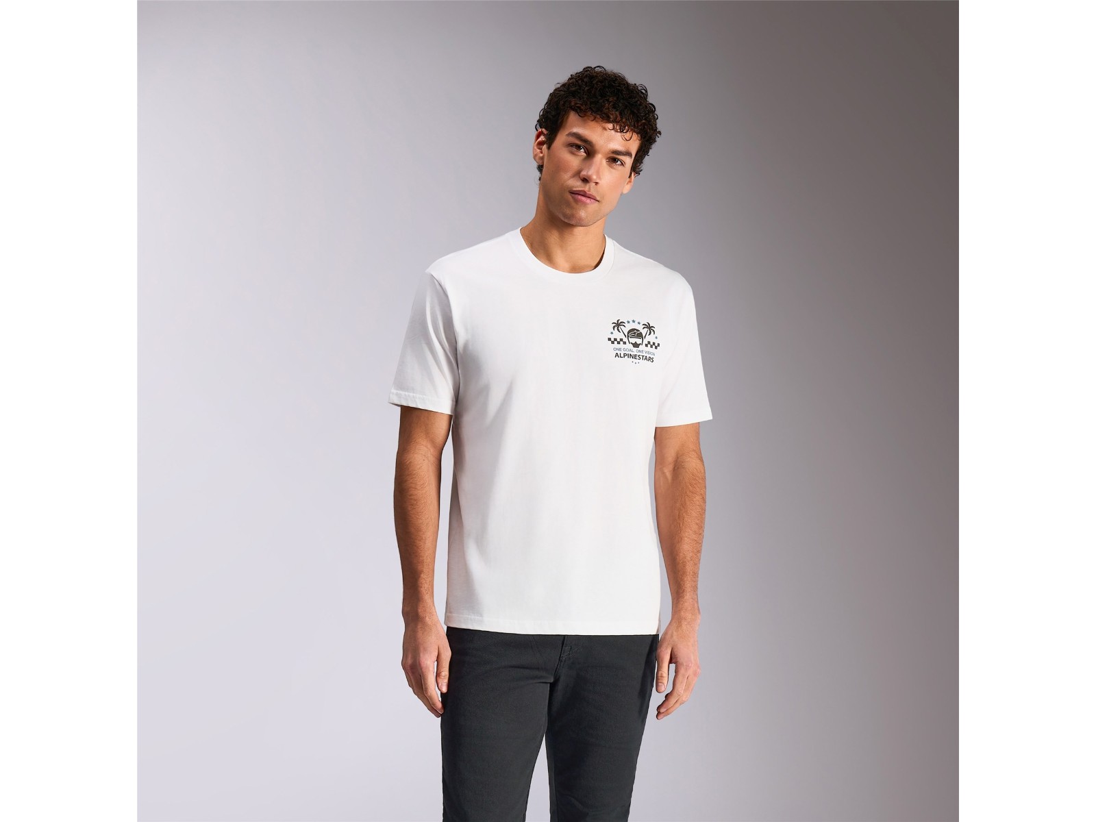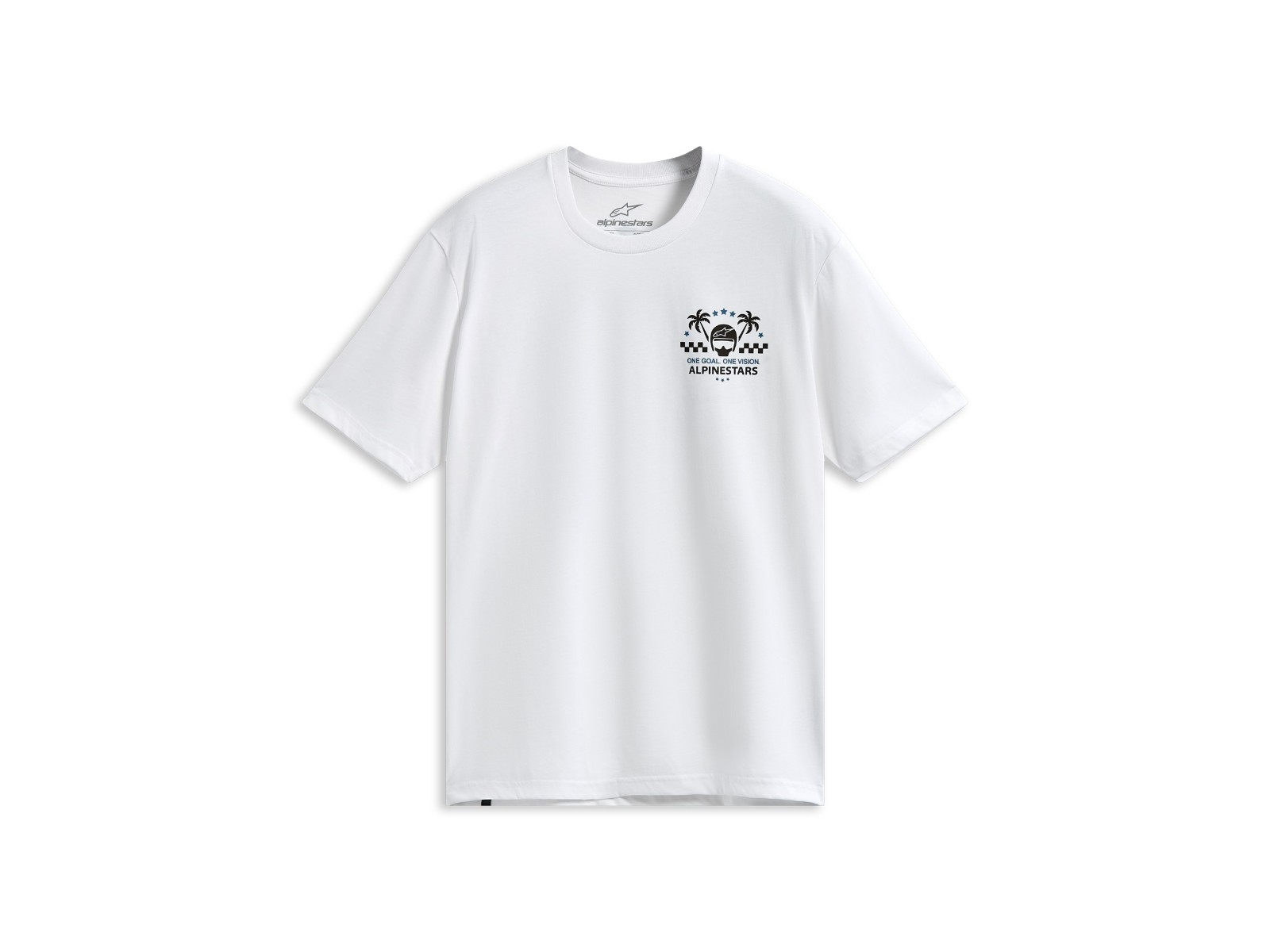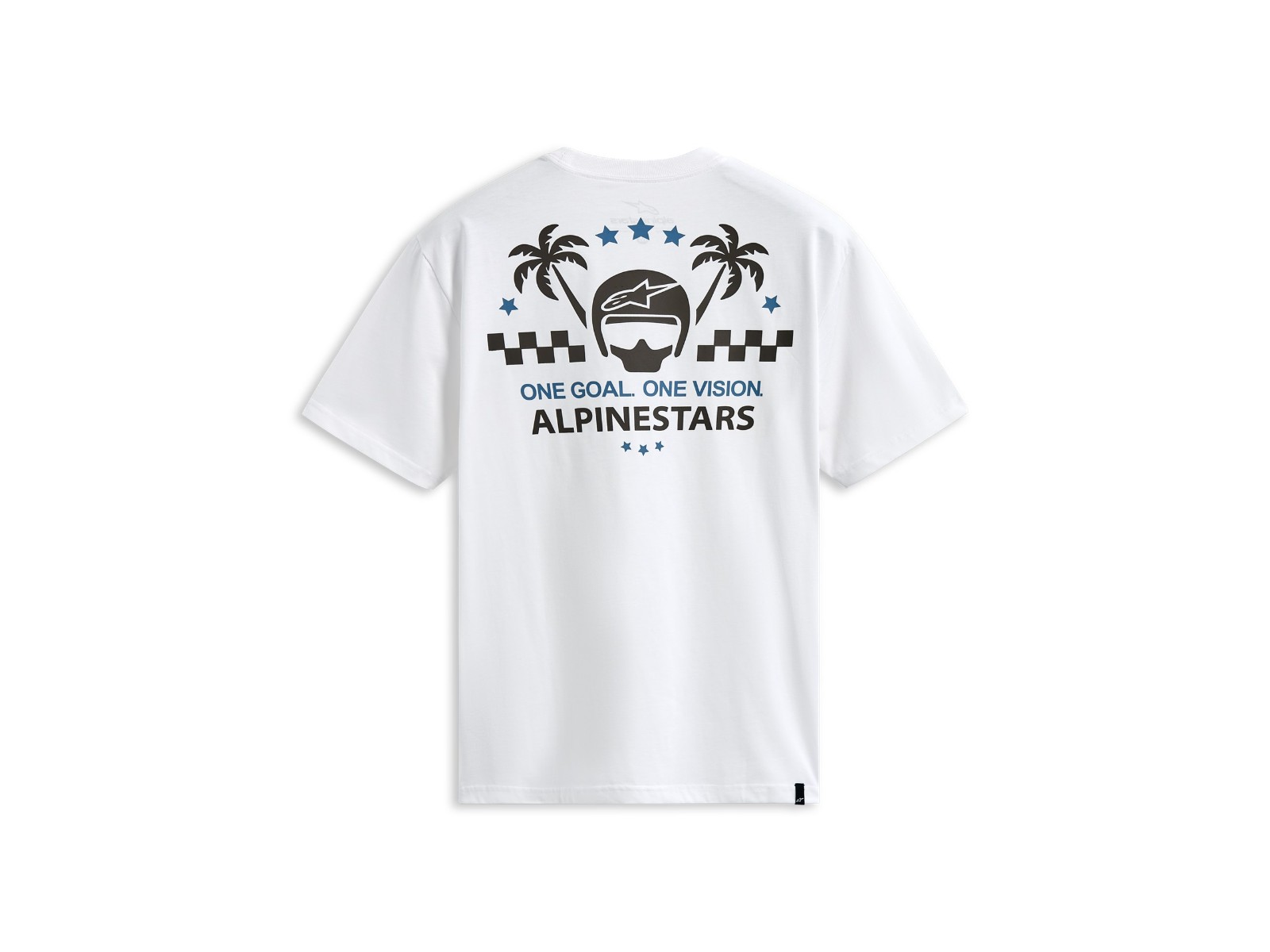 - Alpinestars Wort mit Helm- und Palmenlogos vorne und hinten. Weicher Handdruck
